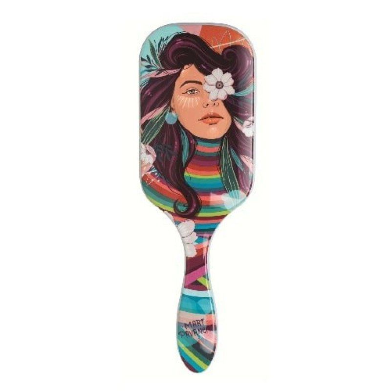 Para todos os tipos de cabelo, desliza suavemente e massageia.